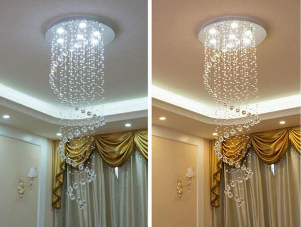 Elevate your interior with the breathtaking Rizu Crystal Raindrop Chandelier, a stunning centerpiece designed to make a statement in hallways, entrances, or spiral staircases. This modern chandelier features a chrome metal canopy that supports dozens of sparkling crystal accents. Suspended by delicate wires to create a mesmerizing floating bubbles effect.