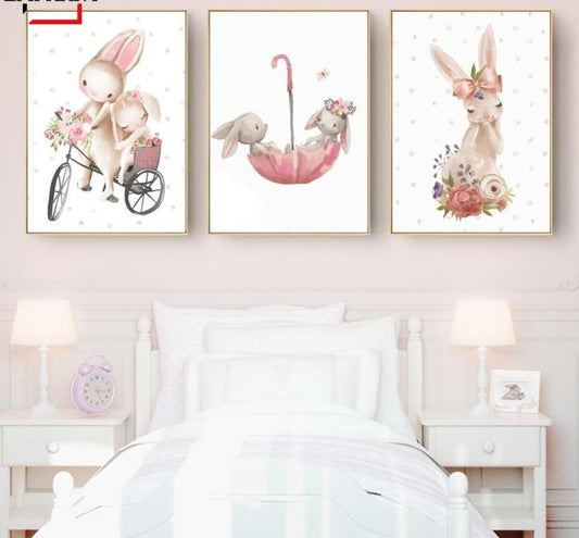 Bear Rabbit Fox Deer Nursery Canvas Wall Art