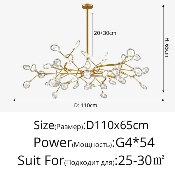 Lyfy - Branch Nature Chandelier draws inspiration from the Heracleum plant, blending the elegance of nature-inspired design with modern functionality. The chandelier features an artistic branch structure, meticulously crafted from iron with a luxurious gold finish.