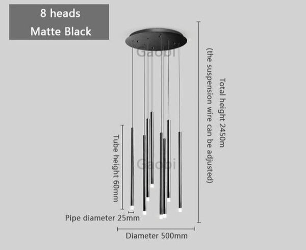 Available in two luxurious finishes—bold black for a contemporary look or gold for a touch of elegance—this chandelier complements a wide range of interior styles, from industrial to modern luxury. The LED lights integrated into each pendant rod provide bright, energy-efficient illumination while maintaining a minimalist design.