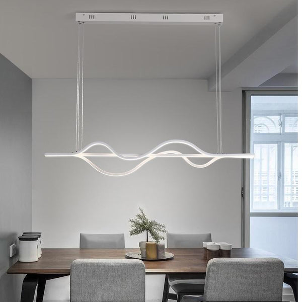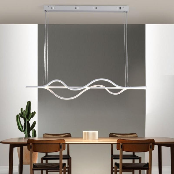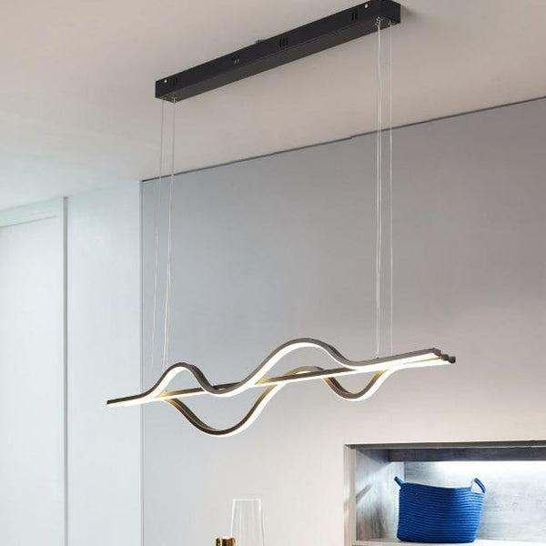 Introducing the Double LED Wave Chandelier, a contemporary masterpiece designed to transform your space with its modern elegance. This LED wave chandelier features a unique double spiral design that emulates the graceful motion of water, creating a captivating focal point in your kitchen, dining area, or living room.