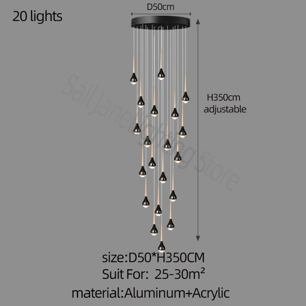 The vertical design complements the height and open space of a staircase, drawing the eye upward and creating a focal point in the home. Duplex Staircase Chandelier suitable for places: stairs, bar, front desk, bedside, living room, bedroom, corridor, dining room, etc.