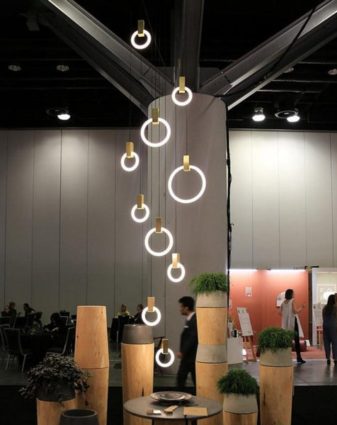 The Owxy Circular LED Staircase Chandelier brings modern elegance to any stairwell, foyer, or high-ceilinged space. Featuring energy-efficient LED rings, this luxury chandelier delivers a soft ambient glow, enhancing the aesthetic of grand staircases and two-story living spaces."