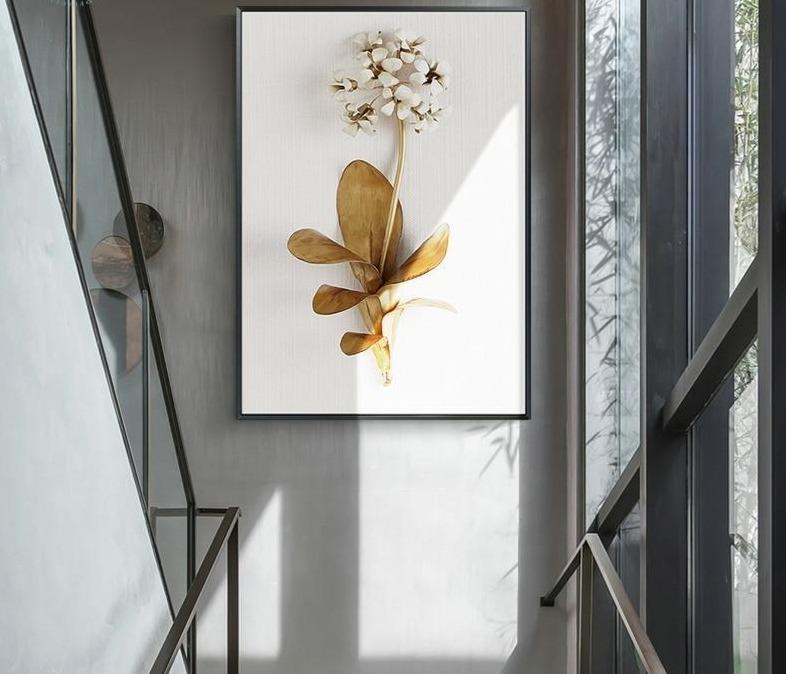 Get decorating and bring live and gorgeous decor to your home, office, or restaurant with this Flower Gold Leaves Wall Art