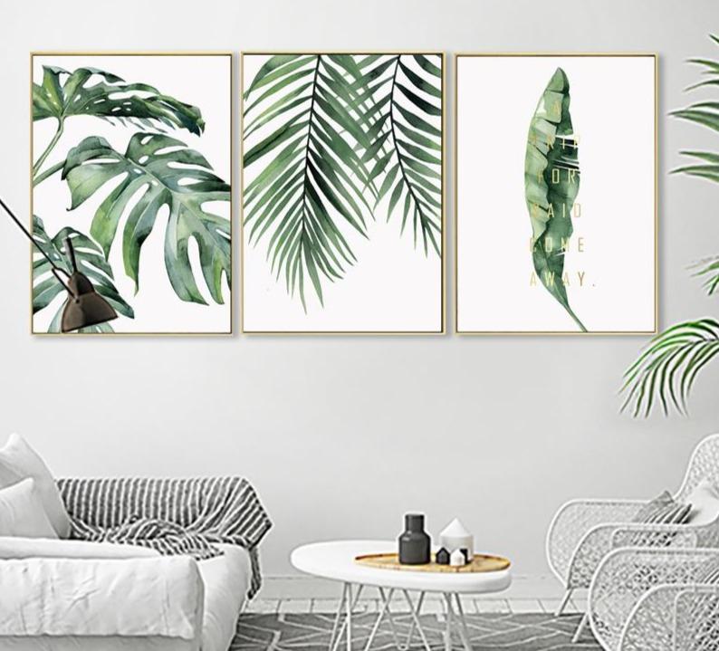 Modern tropical leaves gallery wall art will be a great gift for your friends or loved ones.